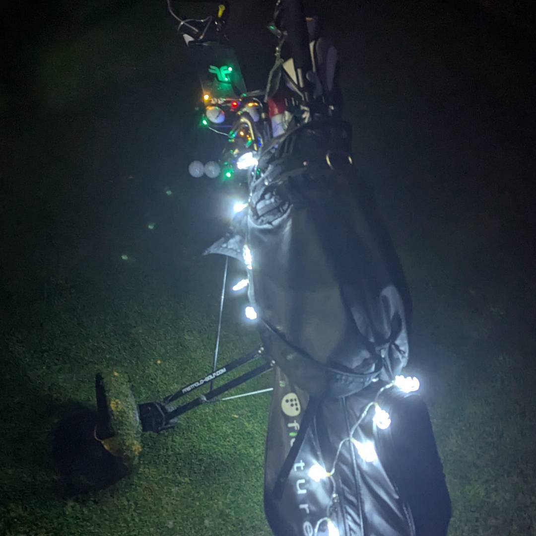 Die Spielerinnen und Spieler starteten ausgestattet mit Leuchtbällen und Kopfleuchten, manche trugen Knicklichter um den Hals, andere hatten ihre Trolleys und Bags mit Lichterketten geschmückt. Auf dem Platz waren Abschläge und Fahnen mit kleinen Lämpchen markiert, um den Weg zu weisen.